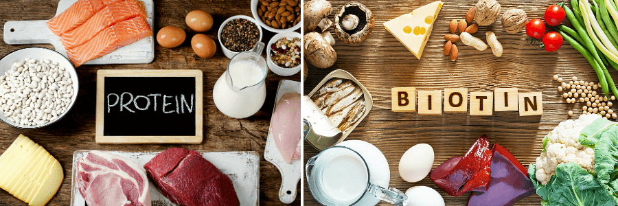 - 단백질은 모발 구성요소이기 때문에 섭취량이 부족했을 때 모발이 약해지기 때문에 탈모가 있거나 예방하고 싶다면 단백질과 비타민B군이 풍부한 닭고기, 돼지고기 등의 육류를 충분히 섭취하는 것이 도움이 됩니다.
