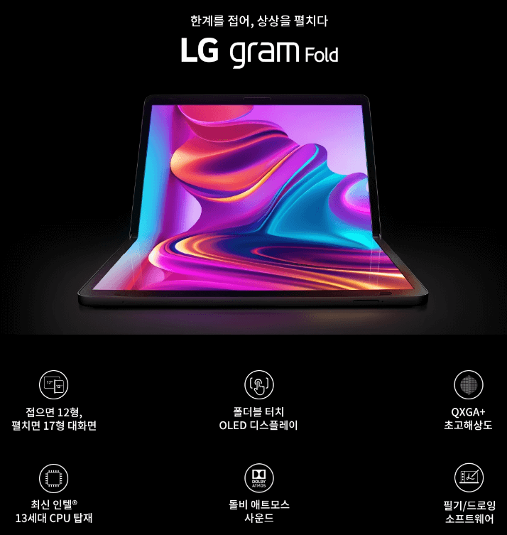 'LG 그램 폴드'는 '그램'의 초경량·대화면의 정체성을 계승하고 화면을 접었다 펼치는 '폴더블'의 자유로움을 더해 고객에게 새로운 라이프스타일 경험을 제시할 것으로 예상된다.