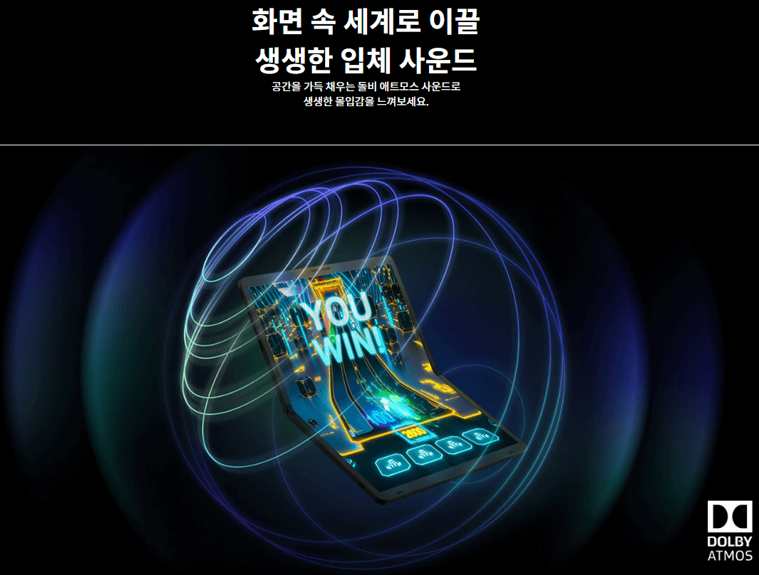 제품에 내장된 3개의 스테레오 스피커는 화면 전환에 따라 자동으로 왼쪽, 오른쪽을 파악해 최적화된 소리를 전달한다. 돌비사의 최신 입체음향기술 '돌비애트모스'도 지원한다.