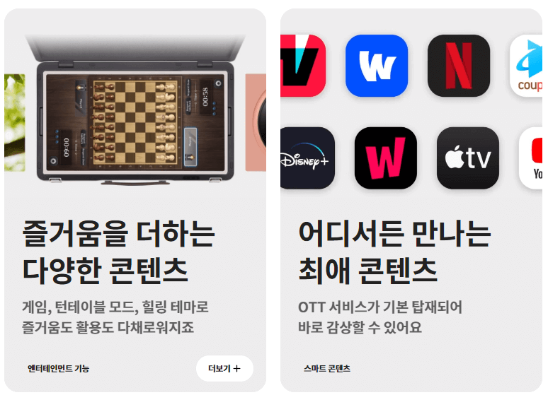돌비의 최신 영상기술인 돌비 비전과 입체 음향 기술 돌비 애트모스를 지원한다. 게임 콘솔 기기가 필요 없는 삼성 클라우드게이밍 서비스 '게이밍 허브'도 탑재해 언제 어디서나 간편하게 게임을 즐길 수도 있다.